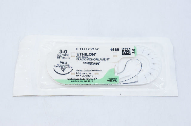 Ethicon 1669 3-0 ETHILON,PS-2, 19mm 3/8c Reverse Cutting, 18inch