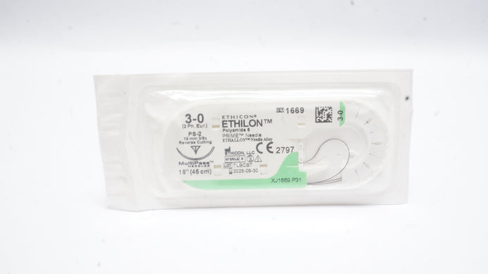 - Ethicon 1669 3-0 ETHILON Stre PS-2 19mm 3/8c Reverse Cutting 18inch