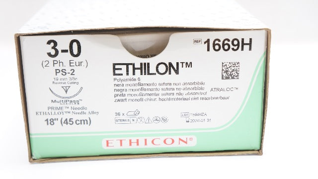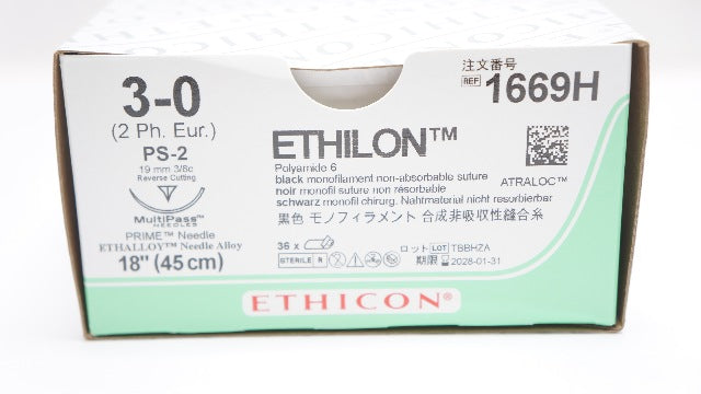 Ethicon 1669H 3-0 Ethilon Stre PS-2 19mm 3/8c Reverse Cutting 18inch - Box of 30