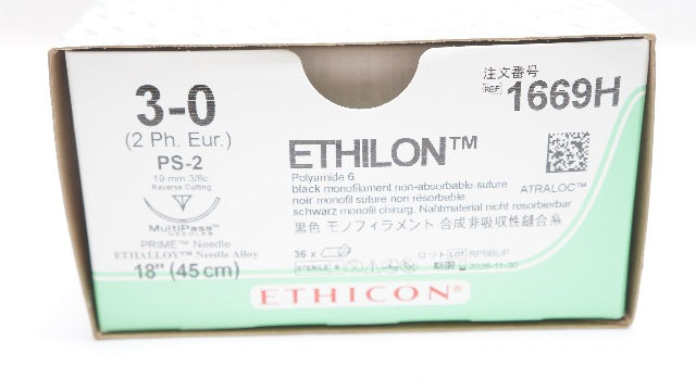 Ethicon 1669H 3-0 Ethilon Stre PS-2 19mm 3/8c Reverse Cutting 18inch - Box of 32