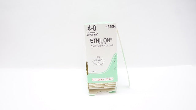 - Ethicon 1670H 4-0 Ethilon Nylon FSL 30mm 3/8c Reverse Cutting, 30in(x)-Box of 36