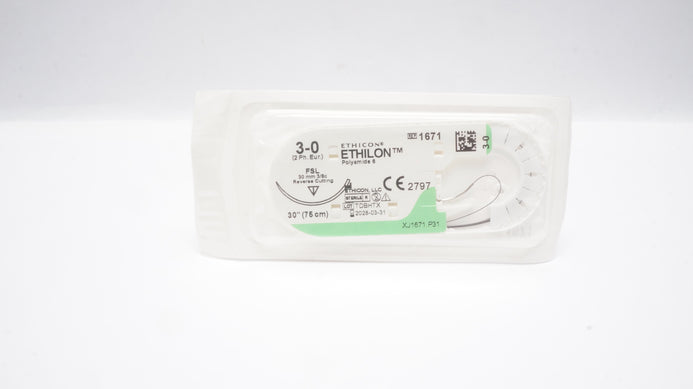 - Ethicon 1671 3-0 ETHILON, FSL, 30mm 3/8c, 30inch