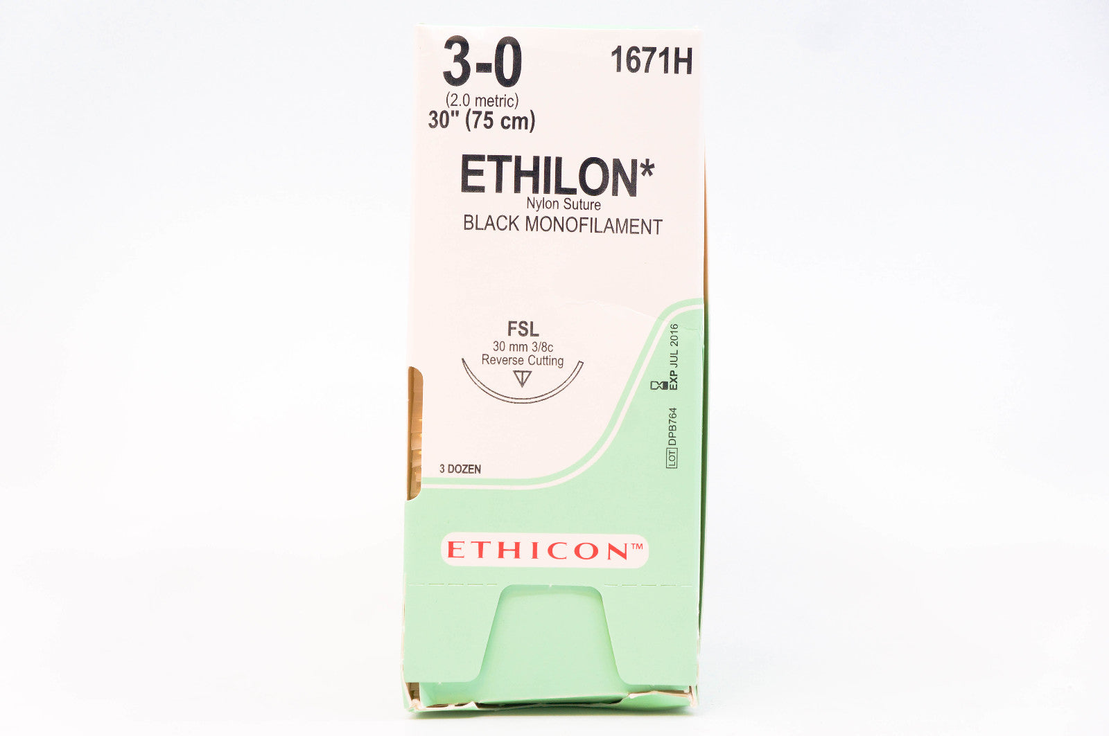 Ethicon 1671H 3-0 ETHILON, FSL, 30mm 3/8c, 30inch ~ Pack of 36 (x)