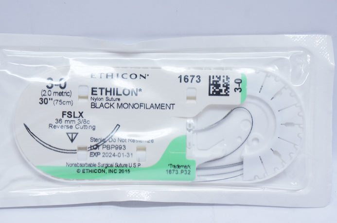 Ethicon 1673 2-0 ETHILON, FSLX, 36mm 3/8c Reverse Cutting, 30inch
