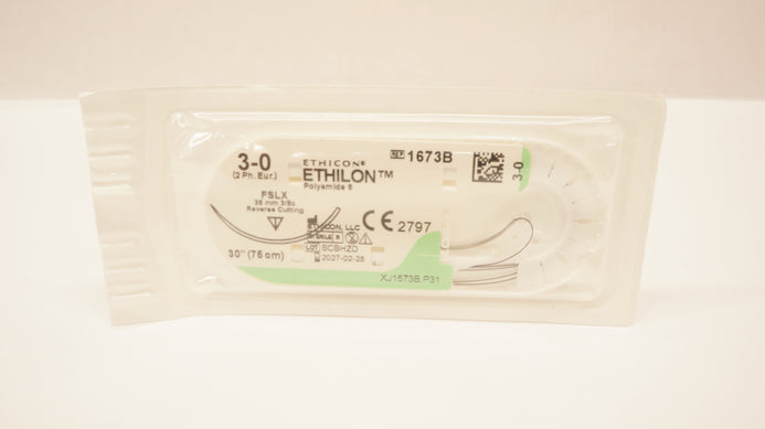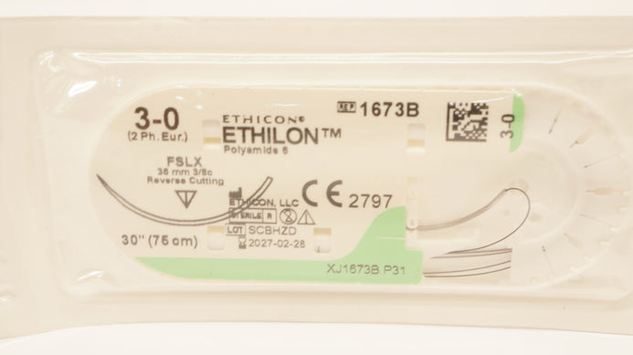 - Ethicon 1673B 3-0 ETHILON Stre FSLX 36mm 3/8c Reverse Cutting, 30inch