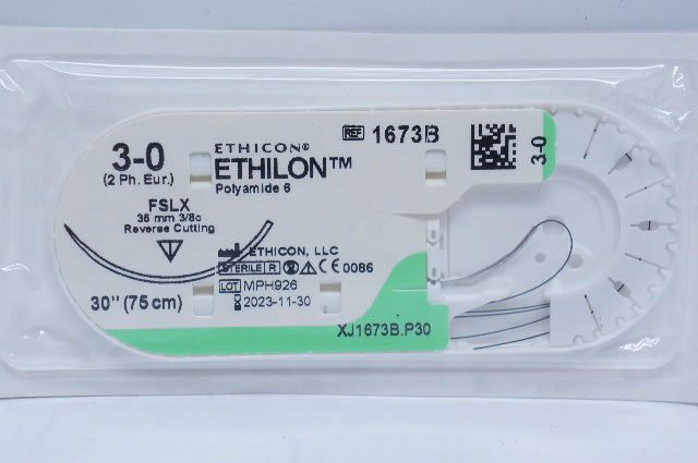 Ethicon 1673B 3-0 ETHILON Stre FSLX 36mm 3/8c Reverse Cutting, 30inch (x)