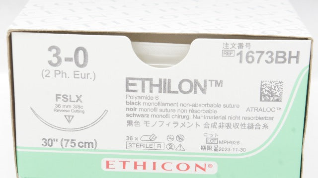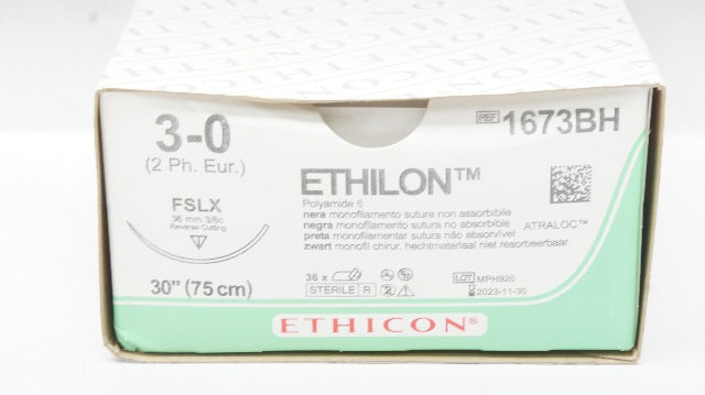 Ethicon 1673BH 3-0 Ethilon Polyamide 6 FSLX 36mm 3/8c, 30In - Box of 36 (x)