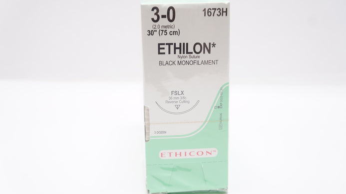 Ethicon 1673H 3-0 ETHILON, FSLX, 36mm 3/8c, Reverse Cutting, 30in. (x)-Box of 36
