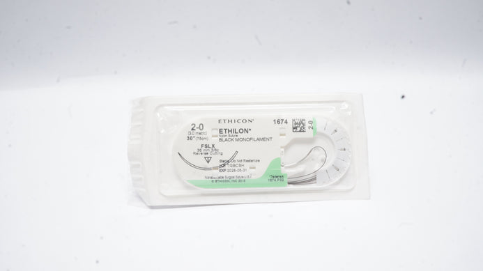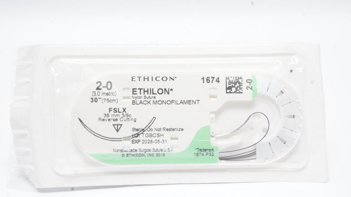 - Ethicon 1674 2-0 ETHILON Nylon Stre FSLX 36mm 3/8c Reverse Cutting, 30inch