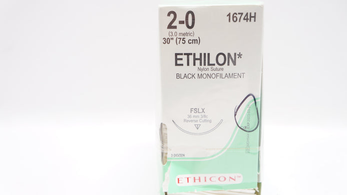 Ethicon 1674H 2-0 ETHILON, FSLX, 36mm 3/8c Reverse Cutting, 30inch (x)-Box of 36