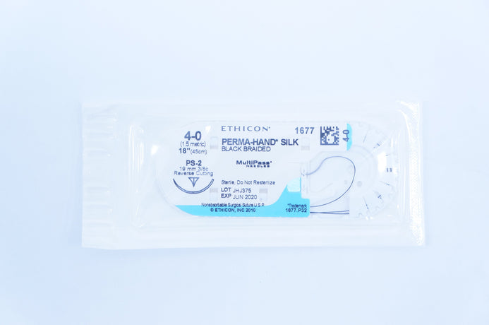 Ethicon 1677 4-0 Perma-Hand Silk PS-2 19mm 3/8c Reverse Cutting, 18inch