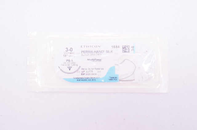 Ethicon 1684 3-0 Perma-Hand Silk Stre PS-1 24mm 3/8c Reverse Cutting 18 inch (x)