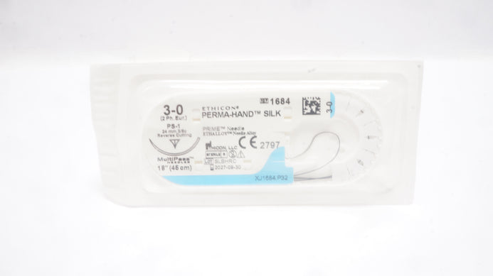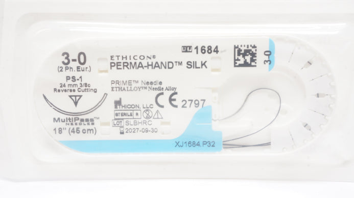 Ethicon 1684 3-0 PERMA-HAND SILK Stre PS-1, 24mm 3/8c Reverse Cutting, 18inch