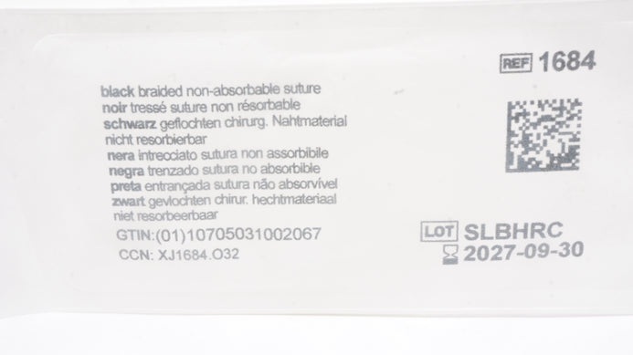 Ethicon 1684 3-0 PERMA-HAND SILK Suture Black Braided PS-1, 24mm 3/8c Reverse Cutting, 18inch