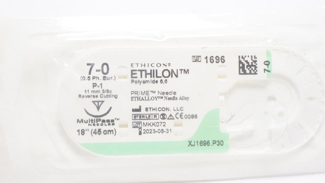 Ethicon 1696 7-0 ETHILON Nylon Stre P-1 11mm 3/8c Reverse Cutting, 18inch