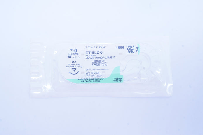Ethicon 1696 7-0 ETHILON,Nylon Suture, P-1, 11mm 3/8c Reverse Cutting, 18inch