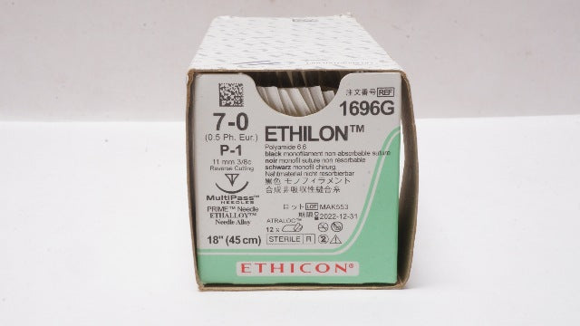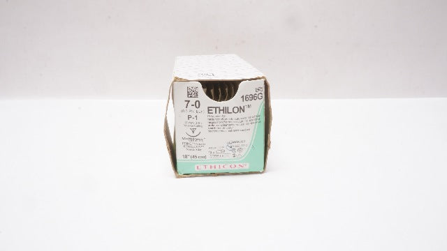 - Ethicon 1696G 7-0 ETHILON Nylon Stre P-1 11mm 3/8c,18in. (x) - Box of 11