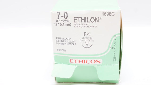 Ethicon 1696G 7-0 ETHILON Nylon Suture Black Monofilament P-1 11mm 3/8c Reverse Cutting 18inch