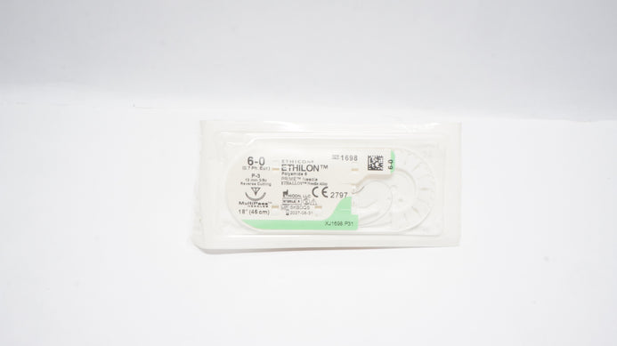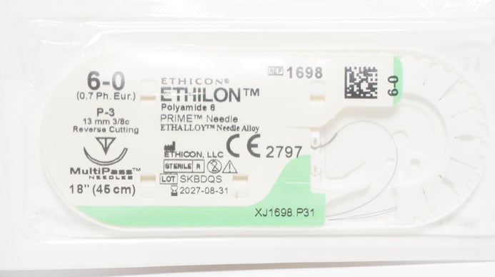 - Ethicon 1698 6-0 ETHILON, P-3, 13mm 3/8c Reverse Cutting, 18inch