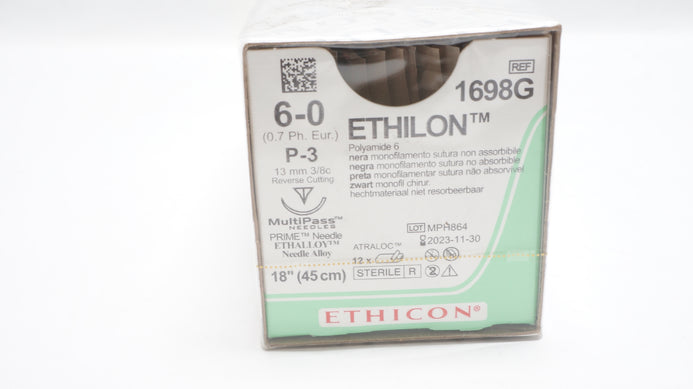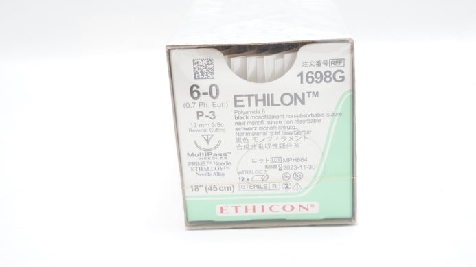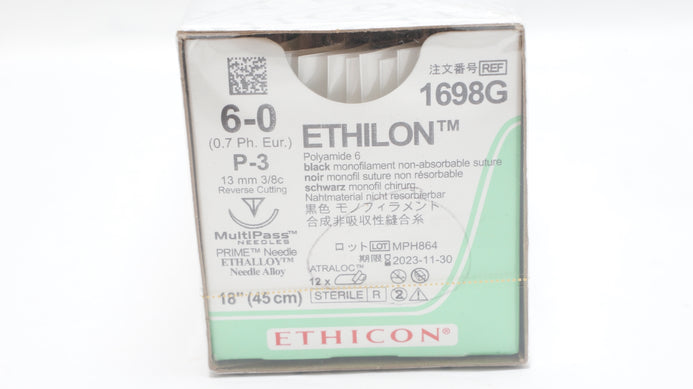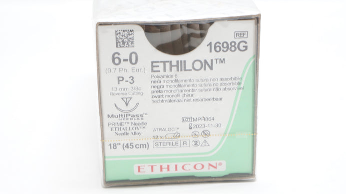 Ethicon 1698G 6-0 ETHILON Suture Black Monofilament P-3 13mm 3/8c Reverse Cutting 18inch
