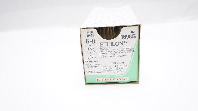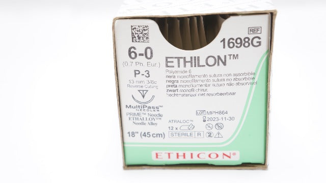 - Ethicon 1698G 6-0 ETHILON Stre P-3 13mm 3/8c Reverse Cutting 18inch(x)- Box of 9
