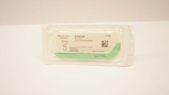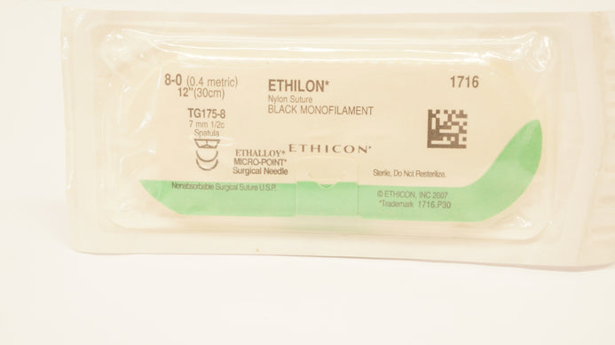 Ethicon 1716 8-0 ETHILON Nylon Stre TG175-8 7mm 1/2c Spatula, 12inch (x)