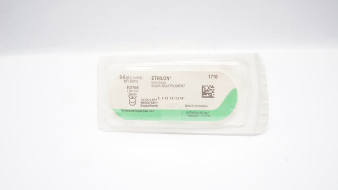Ethicon 1716 8-0 ETHILON, TG175-8, 7mm 1/2c, Spatula, 12inch (x)