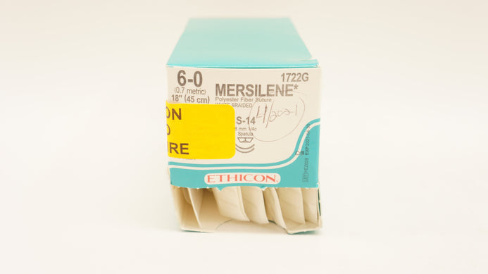 Ethicon 1722G 6-0 Mersilene Fiber Stre S-14 8mm 1/4c Spatula 18inch(x)- Box of 8
