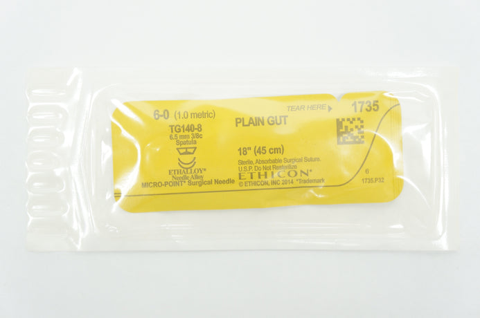 Ethicon 1735 Plain Gut 6-0 18in TG-140-8 6.5mm 3/8c Spatula