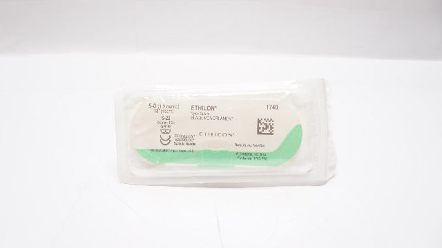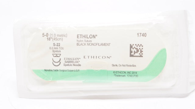 Ethicon  1740 5-0 Ethilon Nylon Suture Black Monofilament S-22 8.0mm 1/2c Spatula Needle 18inch