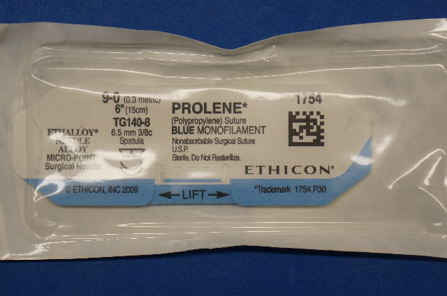 Ethicon 1754 PROLENE, TG140-8 6.5mm 3/8c Spatula, Blue Monofilament, 6", Size 9-0