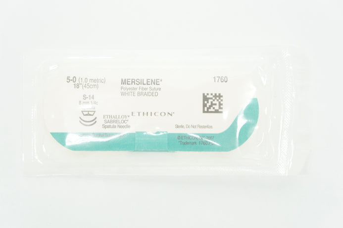 Ethicon 1760 Mersilene Polyester Fiber Suture White Braided 5-0 18in S-14 Spatula 8mm 1/4c