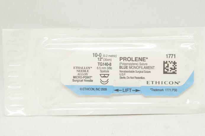 Ethicon 1771 10-0 Prolene Stre TG140-8 6.5mm 3/8c Spatula 12inch (x)
