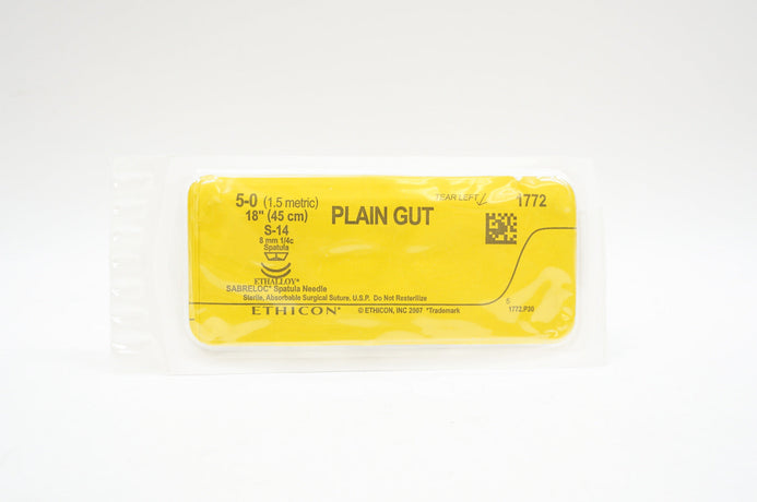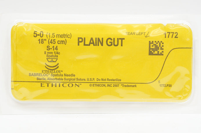 Ethicon 1772 5-0 PLAIN GUT, S-14, 8mm 1/4c Spatula, 18inch
