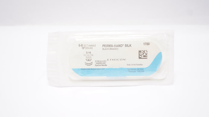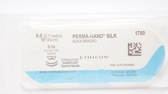- Ethicon 1780 Perma-Hand Silk 6-0 18in. S-14 8.0mm Spatula Needle Suture