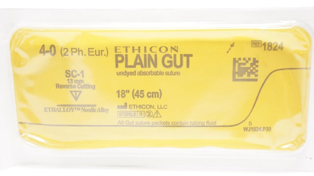 - Ethicon 1824 4-0 Plain Gut Surgical Stre SC-1 13mm Reverse Cutting, 18inch