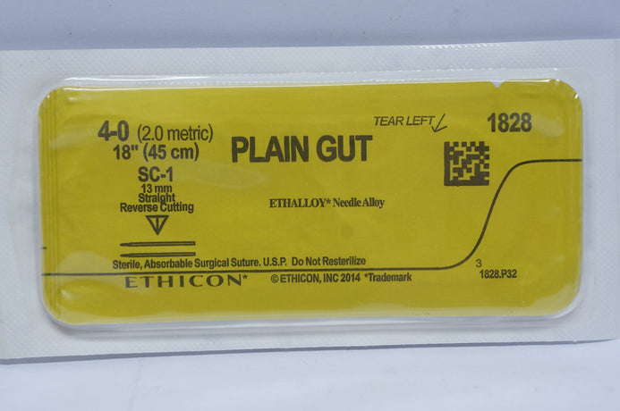 Ethicon 1828 4-0 PLAIN GUT, SC-1, 13mm Straight Reverse Cutting, 18inch