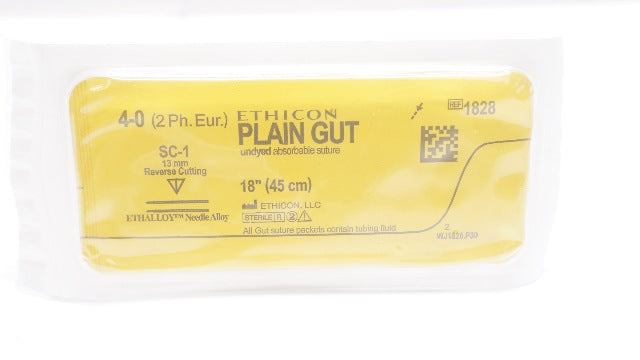 Ethicon 1828 4-0 Plain Gut Undyed Stre SC-1 13mm Reverse Cutting, 18inch (x)
