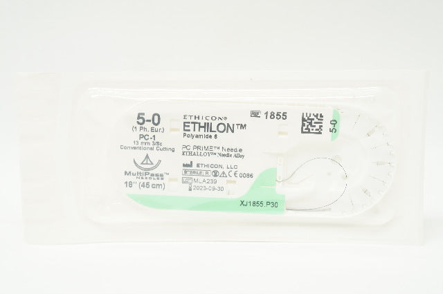 Ethicon 1855 5-0 Ethilon Polyamide 6 Non-Absorbable Suture PC-1 13mm 3/8c Conventional Cutting, 18inch