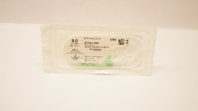 Ethicon 1856 6-0 Ethilon Nylon Suture Black Monofilament PC-1 13mm 3/8c Conventional Cutting 18inch