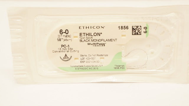 Ethicon 1856 6-0 Ethilon Nylon Stre PC-1 13mm 3/8c Conventional Cutting 18inch(x)