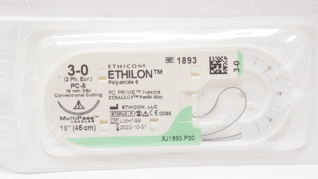 Ethicon 1893 3-0 ETHILON Polyamide 6 Stre PC-5 19mm 3/8c Conventional Cutting18inch