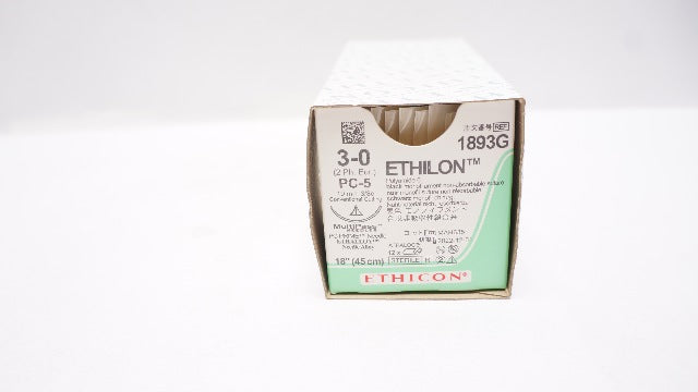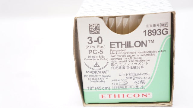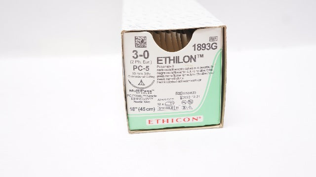 Ethicon 1893G 3-0 ETHILON BLACK 18inch Stre., PC-5 19mm 3/8c (x) - Box of 12
