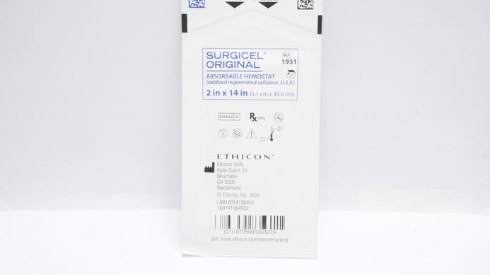 Ethicon 1951 Surgicel Original Absorbable Hemostat 2inch x 14inch
