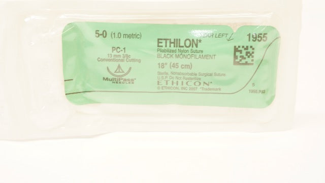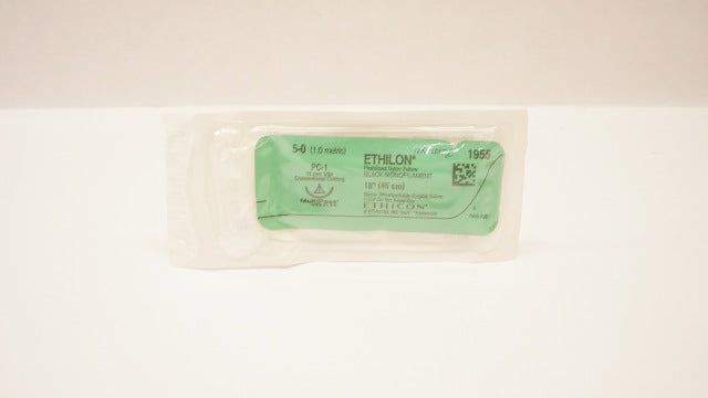 Ethicon 1955 5-0 ETHILON Pliabilized Nylon Suture Black Monofilament PC-1 13mm 3/8c Conventional Cutting, 18inch