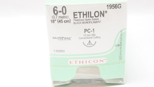 Ethicon 1956G 6-0 Pliabilized Nylon Stre PC-1 13 mm 3/8c 18in(x)- Box of 12