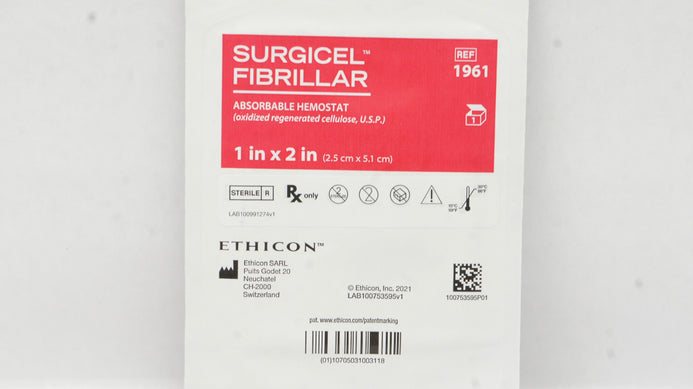 Ethicon 1961 Surgicel Fibrillar Absorbable Hemostat 1.0inch x 2.0inch (x)