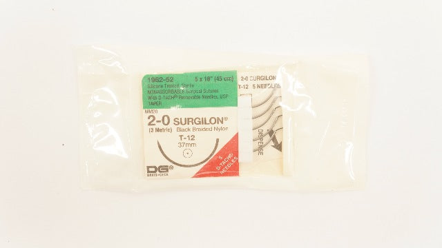 Ethicon 1962-52 2-0 Surgilon Black Braided Nylon Suture T-12 37mm Taper 5x18inch