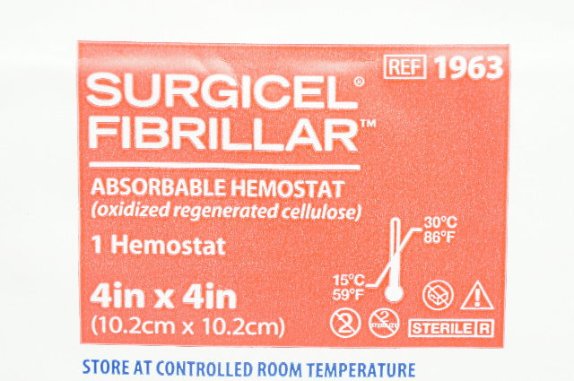 Ethicon 1963 Surgicel Fibrillar Absorbable Hemostat (Oxidized Regenerated Cellulose) 4 inch x 4 inch