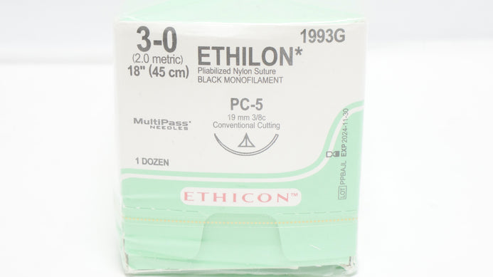 Ethicon 1993G Ethilon 3-0 Nylon Stre PC-5 19mm 3/8c 18inch